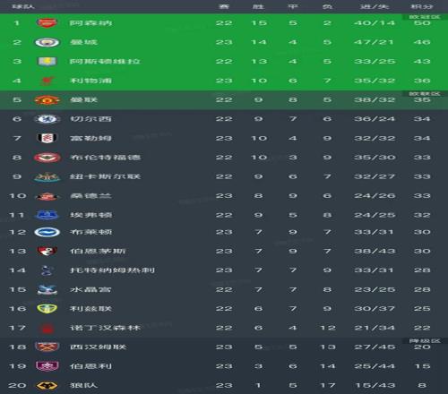 英超最新积分榜