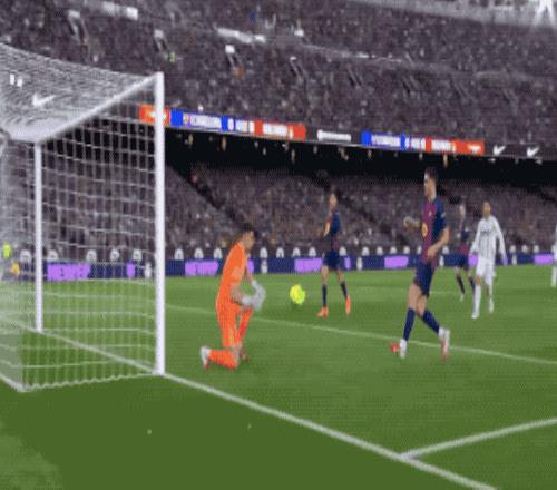 裁判果断判罚给巴萨任意球,还给了奥维耶多门将一张黄牌。