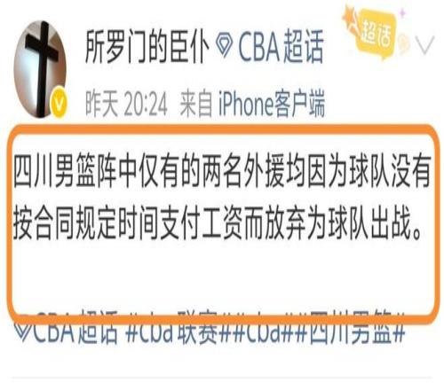 赛后,四川队仅有的两名外援也因为拖欠工资而放弃为球队出战也被推上了热搜。